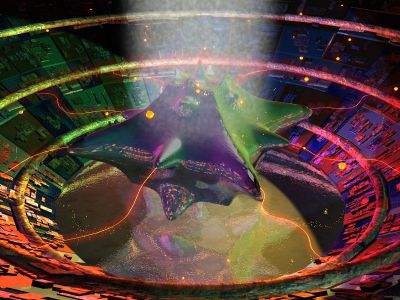 Supercooled liquids have some very strange properties, none stranger that what is shown here. A pool of liquid helium has spawned an unusually symetric blob which appears to suck the chaos from it's surroundings. Followers of Eris were appalled by this discovery, but their protest was trivial compared with the outcry from the national lottery people, who tested the new anti-chaos machine against their random ball picker. Ten time in a row the numbers it chose were 1 2 3 4 5 6 in that order! |