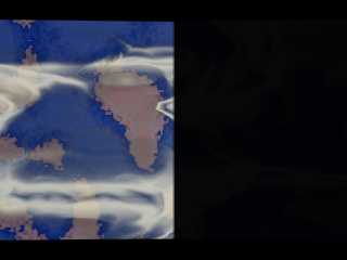 Moving in closer now, a mere half million kilometers up, looking straight down on an area half in shadow and half in light. Here you can see in some detail the effect of the 70% water figure. I had trouble getting the land colours right and in the end sampled them from a full globe pic of the earth. The clouds would not exhibit the same patterns as those found around a spinning spherical body, but as to whether they would look like this - well, comments are invited.